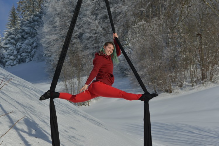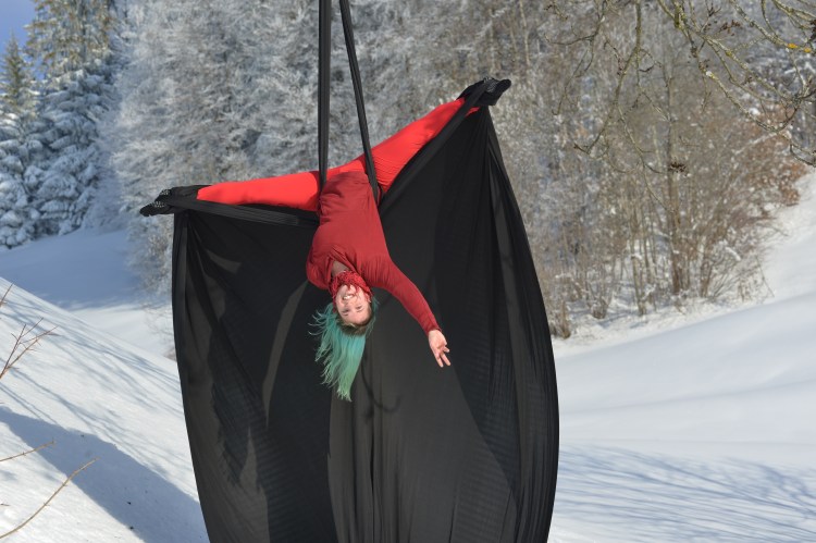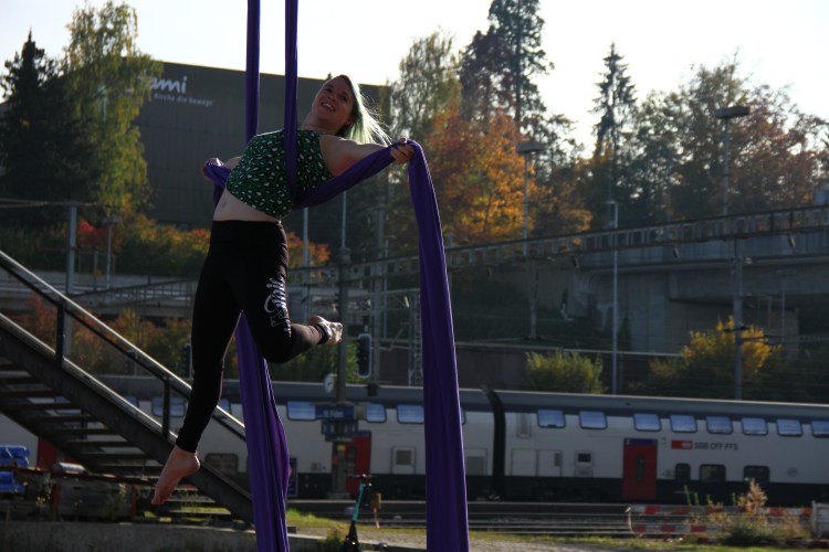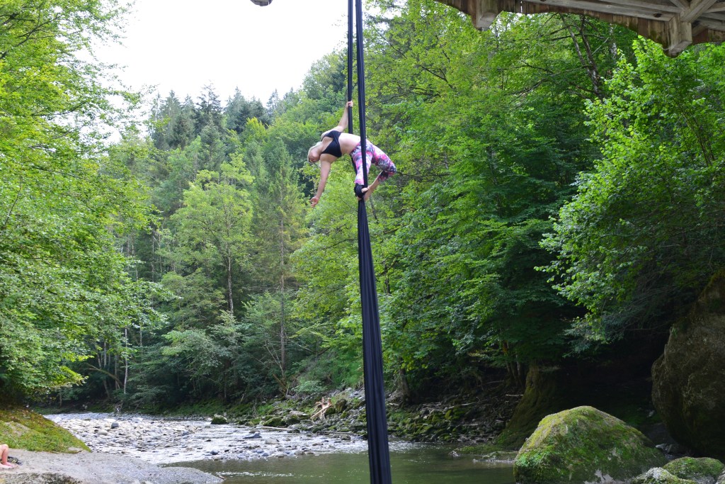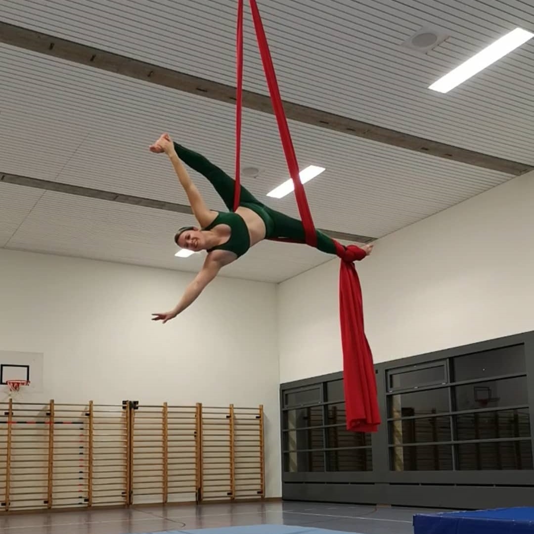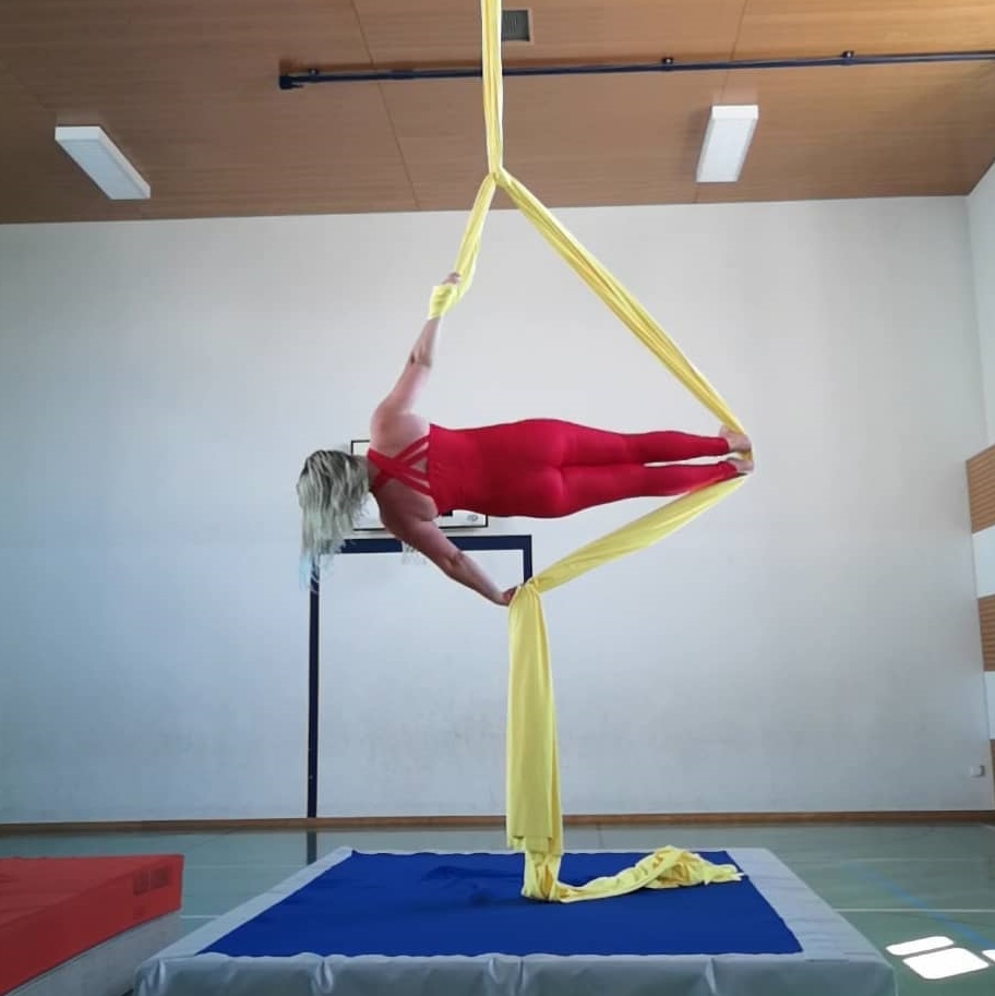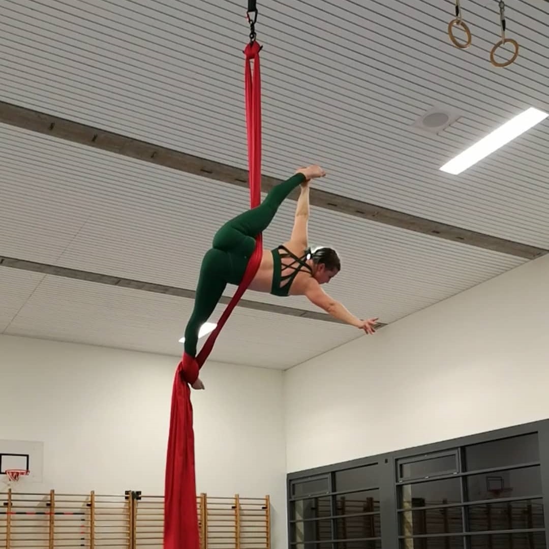 Ende 2016, entdeckte ich das Aerial Silk, diese Sportart begeisterte mich noch mehr als Pole. In Konstanz besuchte ich daraufhin wöchentlich einen Aerial Silk Kurs, welchen ich ein Jahr lang machte. Danach buchte ich zum ersten mal eine Turnhalle selber und trainiert von da an mit Freunden zuerst monatlich, danach wöchentlich zusammen. Regelmässig besuchte ich Silk-Workshops um neues dazuzulernen und lernte viele Combos / Figuren und Drops selber. Ebenfalls unterrichtete ich ab und zu Beginner Workshops am Vertikaltuch.