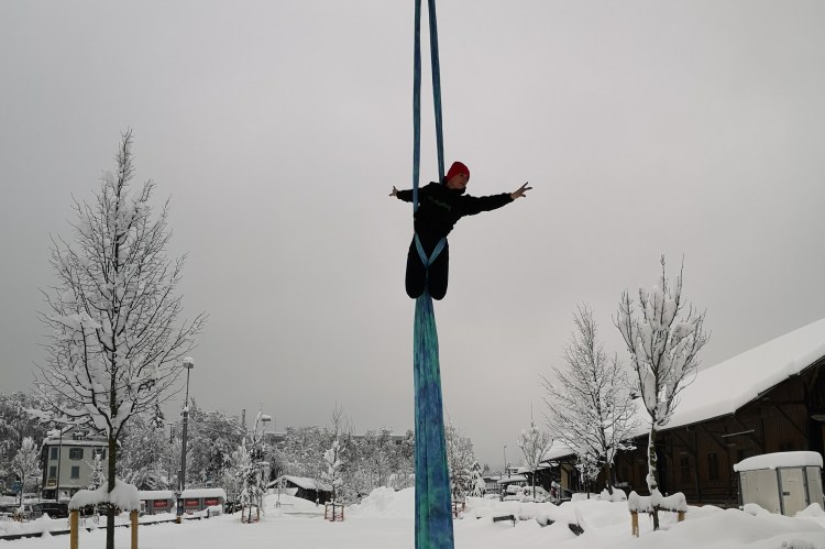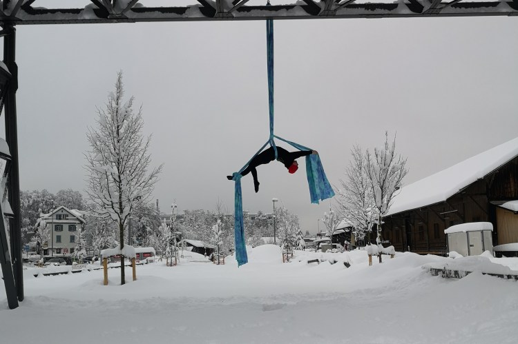 Ende Dezember 2018 – Ende Dezember 2019 wurde mein Silk Training durch meine Schwangerschaft teilweise unterbrochen. Nach der Schwangerschaft konnte ich meine Turnhalle Wöchentlich nutzen und nutzte jede Gelegenheit zu trainieren. Schnell war ich wieder auf meinem Stand von vor der Schwangerschaft und kurze Zeit später sogar noch fitter. Zu dieser Zeit bot ich immer mal wieder Silk-Workshops an und entschied mich einen Wöchentlichen Aerial Silk Kurs anbieten zu wollen. Per Anfang November 2020 realisierte ich meinen ersten erfolgreichen 6-Wochen Silk Kurs.
